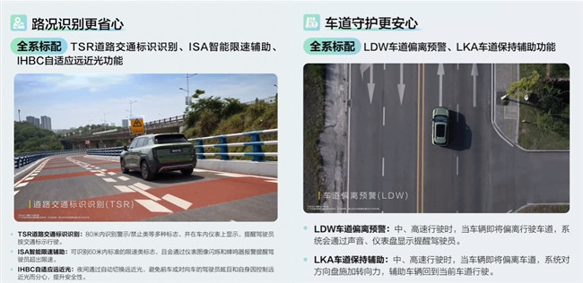 假期出游时,面对陌生路段,纳米06可以通过TSR道路交通标识识别、ISA智能限速辅助、IHBC自适应远近光功能的协同工作,识别安全标识,提升行车便利,避免因路线不熟悉而导致的违章风险。即便是面对山路过弯、会车等复杂场景,LKA车道保持辅助、LDW车道偏离预警共同保驾护航,进一步规范驾驶员行驶习惯,大幅提升行车安全,车道守护更安心。