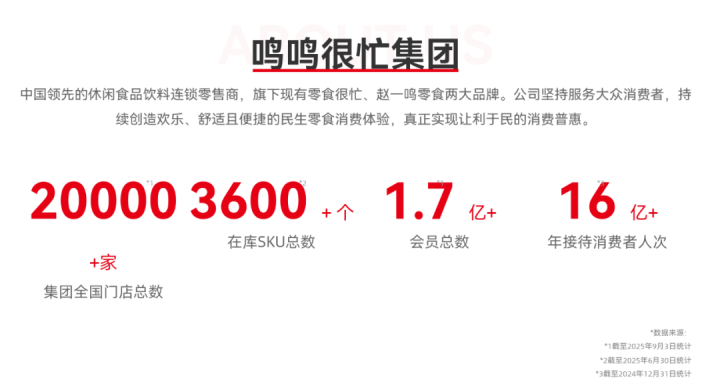 资料显示,鸣鸣很忙旗下拥有“零食很忙”“赵一鸣零食”两大核心品牌,两大品牌分别于2017年、2019年起步,在2023年合并成立鸣鸣很忙集团,凭借早期布局与规模扩张迅速抢占市场。